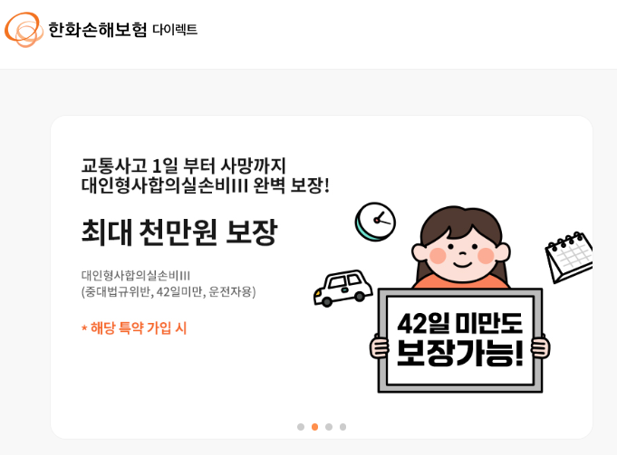 한화손해보험을 통해 가입이 가능한 다이렉트 운전자보험 상품으로 삼성화재와 더불어 월 3천원대의 플랜으로 가입이 가능한 특징이 있습니다.