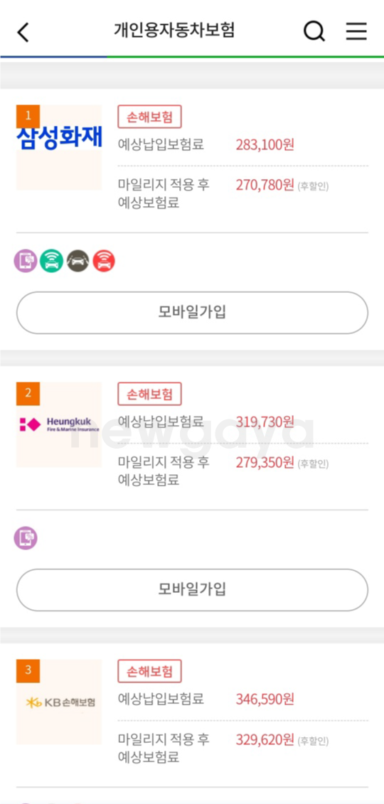 보험료를 비교한 결과 삼성화재의 보험료가 가장 저렴하게 나왔습니다. 물론 개인 및 차량의 종류 및 추가 할인 특약 사항에 따라서 산출되는 보험료는 차이가 있을 수 있으므로 직접 확인을 해보는 것이 가장 좋습니다.